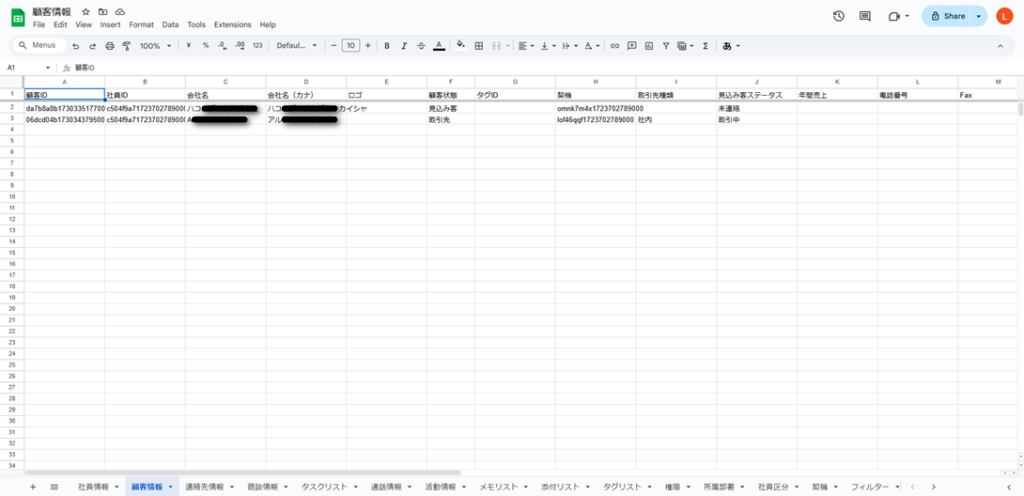 この記事で紹介したCRMアプリには、データソースとして、Google スプレッドシート(以下、スプレッドシート)のデータを使用する。