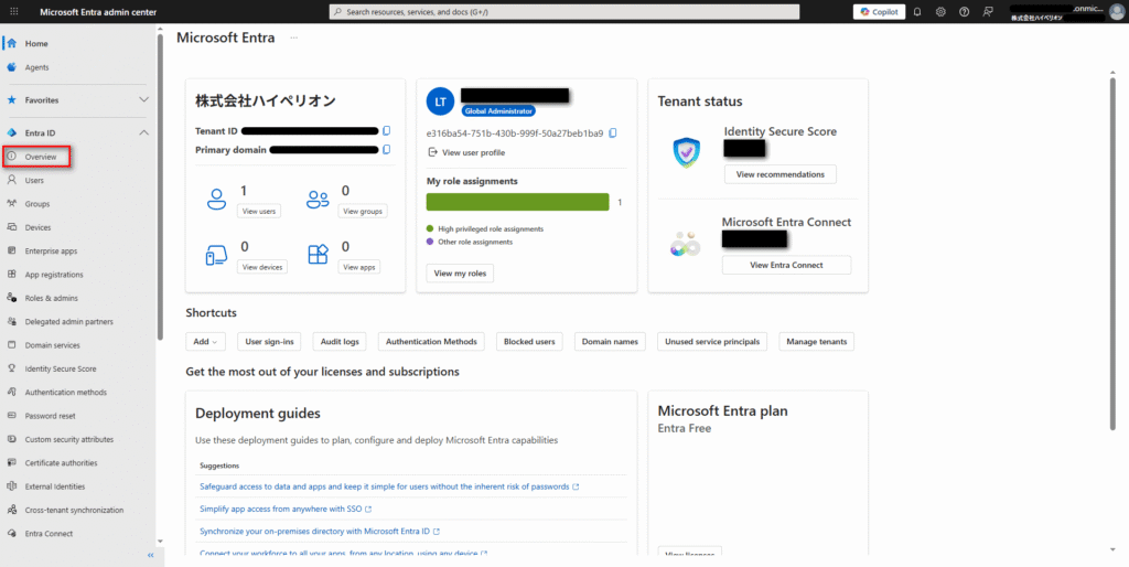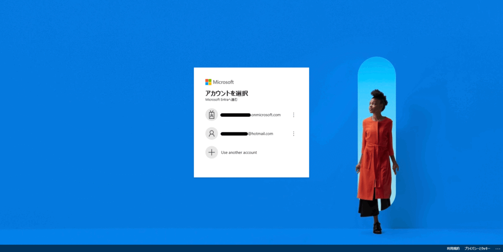 個人のMicrosoft Entra IDでは、ドメインが「—.onmicrosoft.com」という形式になる。