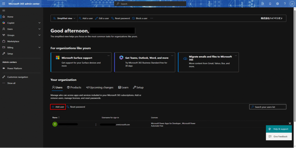 2.Microsoft 365管理センタでは、テナントにユーザー追加するのは2つ方法がある