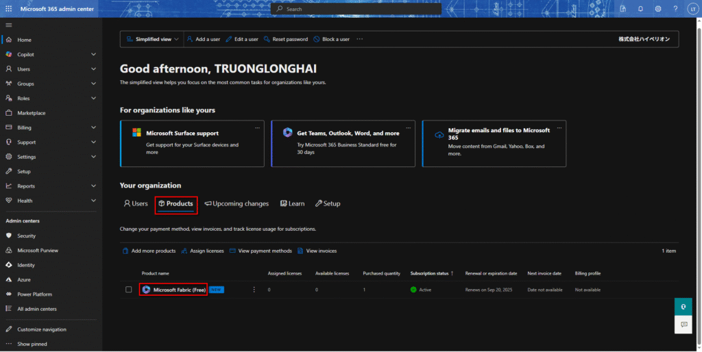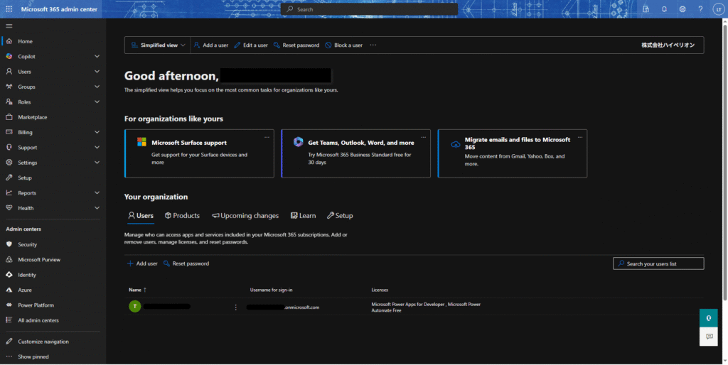 1.以下のリンクをアクセスし、Microsoft 365管理センターをログインする