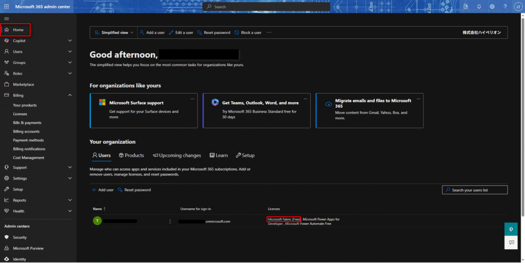 ※デモンストレーションでは、Microsoft 365管理センターの英語版を使用する。